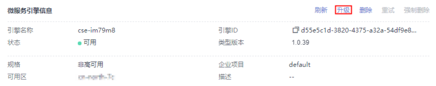 注意1. 僅微服務引擎專享版支持升級引擎版本。升級后,不支持版本回退。