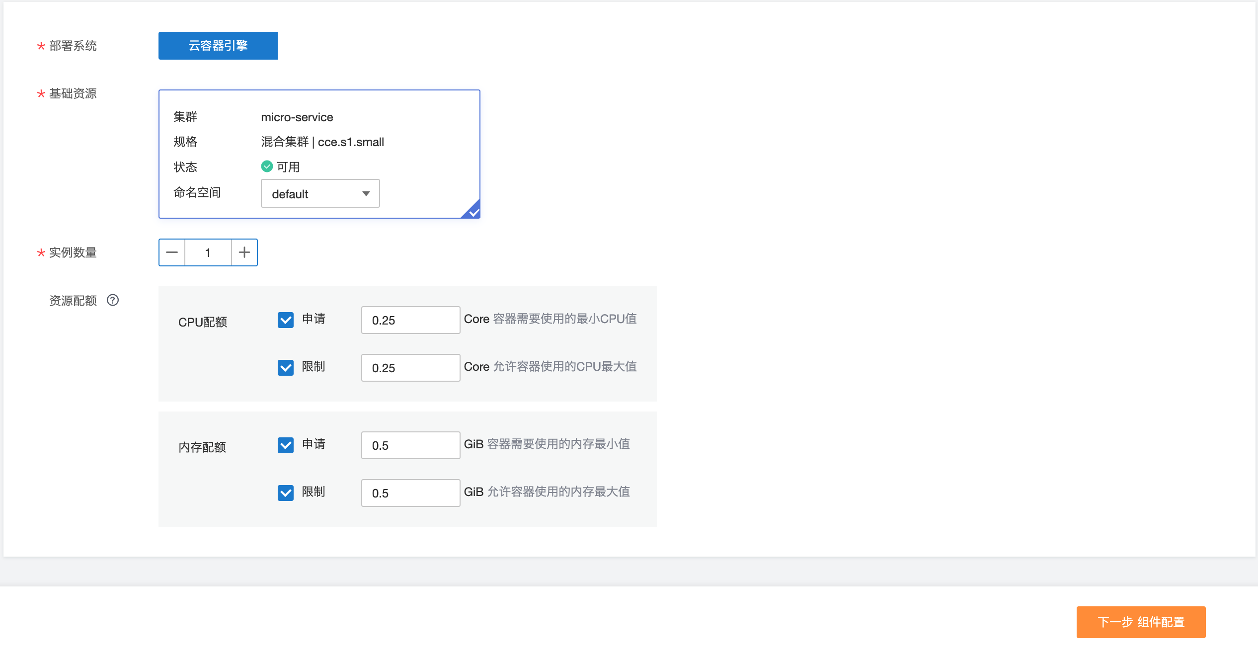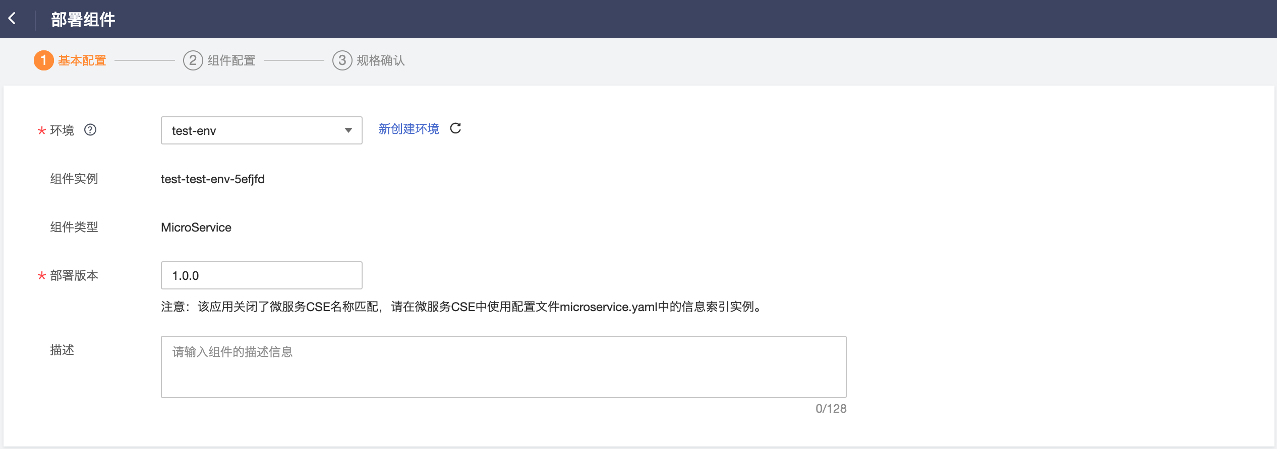 - “微服務引擎”:默認選擇創建環境時選擇的微服務引擎。