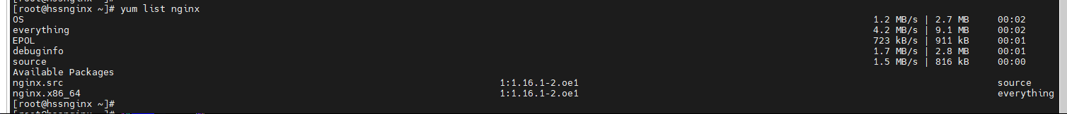 檢查yum源是否有nginx軟件包,如果沒有nginx軟件包需完成yum源配置,并臨時綁定公網IP,待安裝結束之后再解綁公網IP。