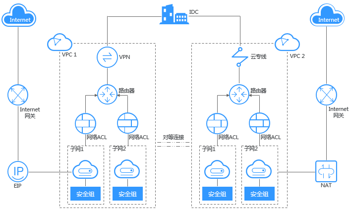 您可以在VPC中定義安全組、VPN、IP地址段、帶寬等網絡特性。用戶可以通過VPC方便地管理、配置內部網絡,進行安全、快捷的網絡變更。同時,用戶可以自定義安全組內與組間彈性云主機的訪問規則,加強彈性云主機的安全保護。