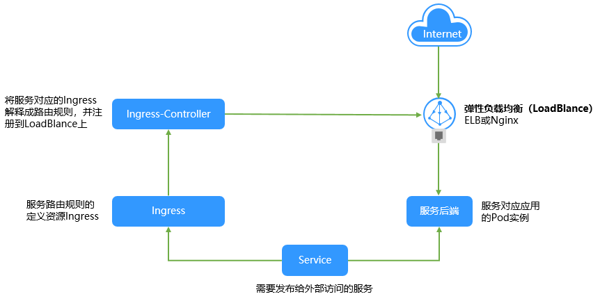 七層負載均衡(Ingress)是采用了共享型彈性負載均衡和獨享型彈性負載均衡,在四層負載均衡訪問方式的基礎上支持了URI配置,通過對應的URI將訪問流量分發到對應的服務。同時,服務根據不同URI實現不同的功能。