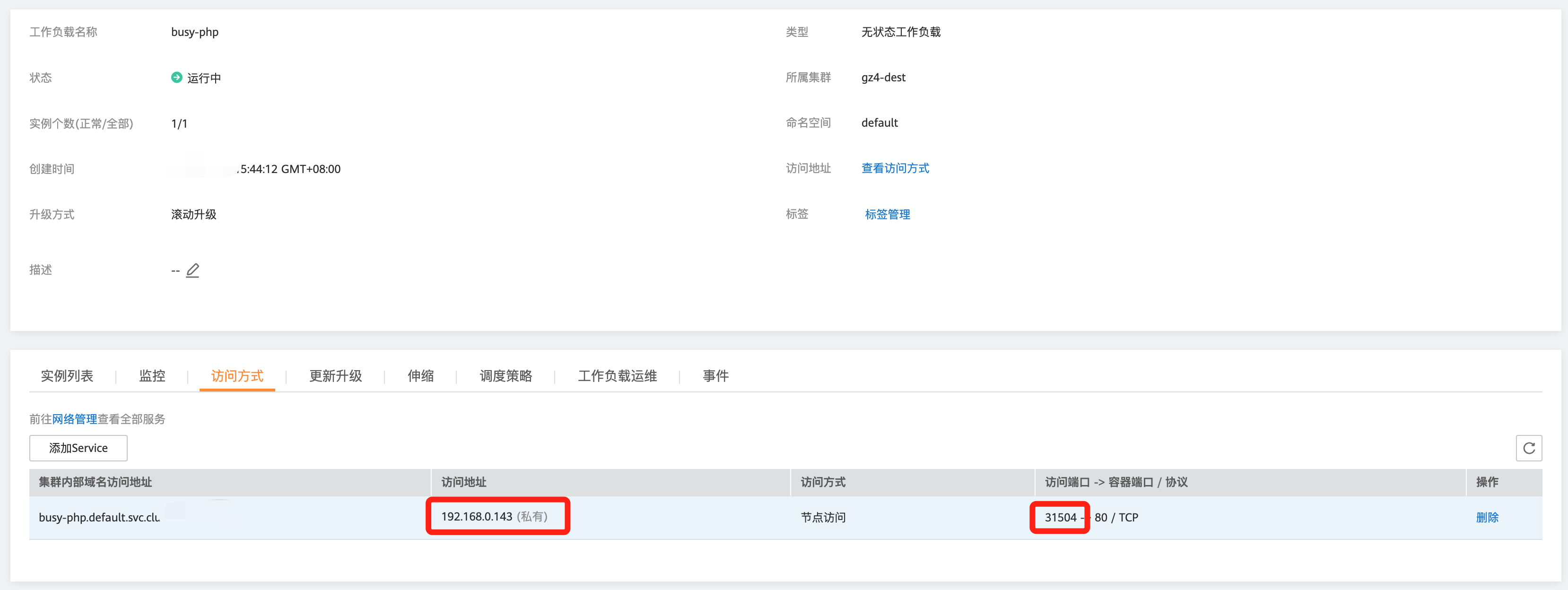 其中的{ip:port}為busy-php工作負載的訪問地址和端口,可在負載詳情頁中獲取: