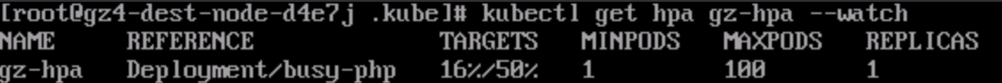 查看HPA策略,因為之前已進行過連通性測試,可以看到目標負載busy-php的指標(CPU使用率)為16%