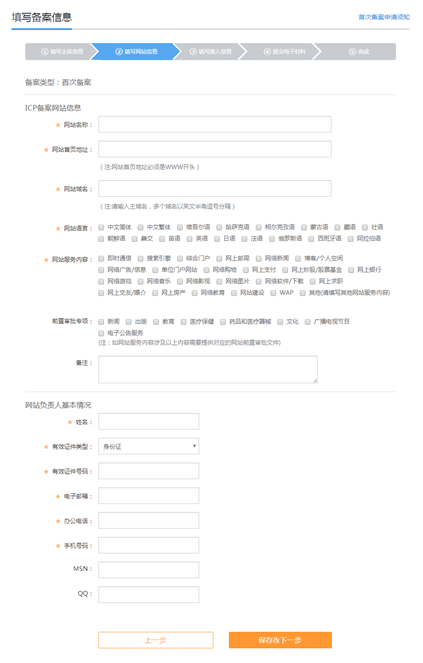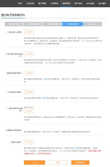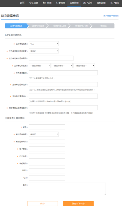 說明:個人備案請提前準備好個人證件掃描件或照片,例如身份證、護照等,企業備案請提前準備好企業證件及負責人證件掃描件或照片,例如營業執照、組織機構代碼證等。