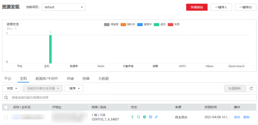 步驟2 單擊左側導航欄的“ 資源發現 ”,進入資源發現界面。