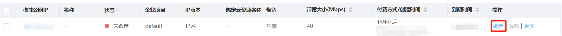 綁定后,在控制臺列表中,該彈性IP狀態顯示“已綁定”。