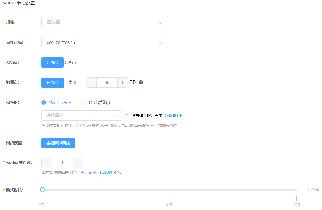 5)worker節點的配置,除規格和操作系統外,其余參數保持默認,填寫如下圖:
