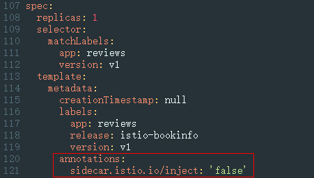 步驟 2 找到spec.template.metadata.annotations字段,添加sidecar.istio.io/inject: 'false'。