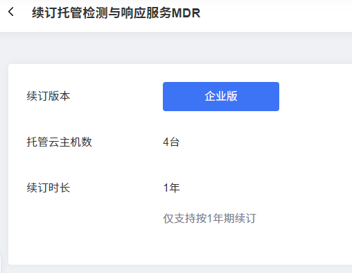 點擊企業版服務列表內的“續訂”按鈕,跳轉到企業版續訂界面。