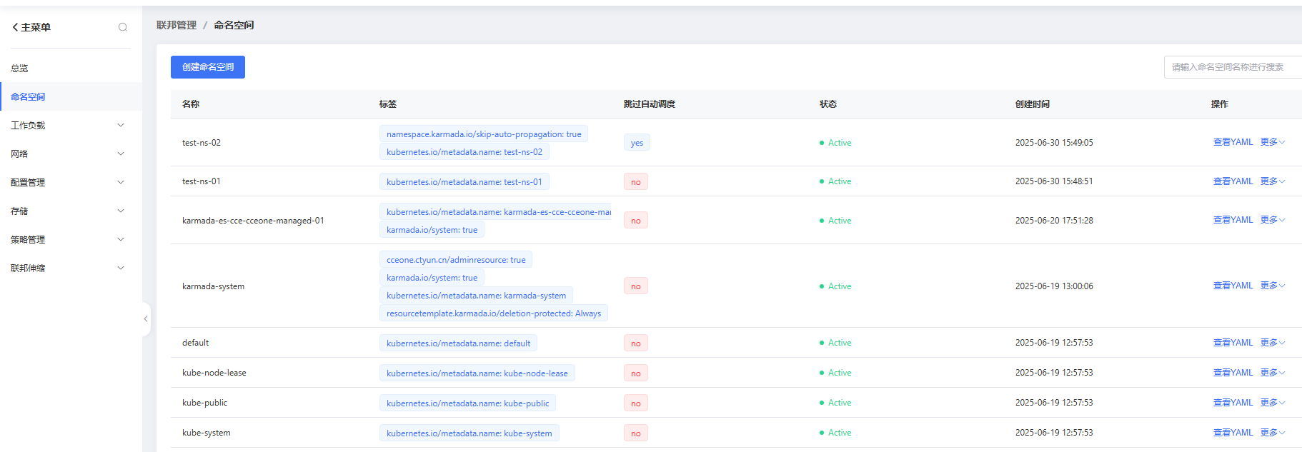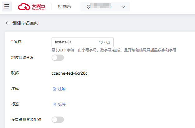 用戶在聯邦創建的命名空間,默認會自動分發到所有成員集群,用戶可設置跳過自動分發。