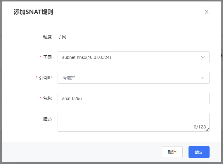| 描述 | SNAT規則的描述信息,非必填項。 |