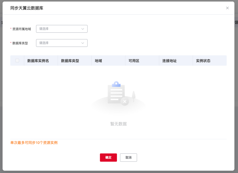 - 選擇資源所屬地域、數據庫類型后,同步天翼云數據庫。