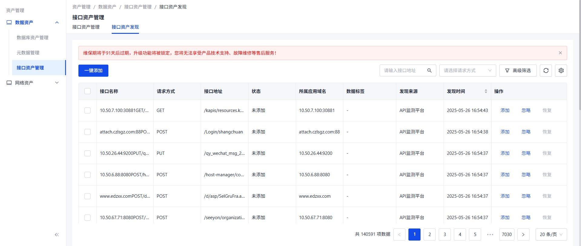 接口資產發現模塊中管理和展示所有從組件中獲取的接口資產信息。