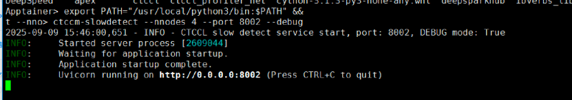 export PATH="/usr/local/python3/bin:$PATH"(替換為自己的安裝路徑) &&ctccm --nnodes 4 --port 8002 --debug