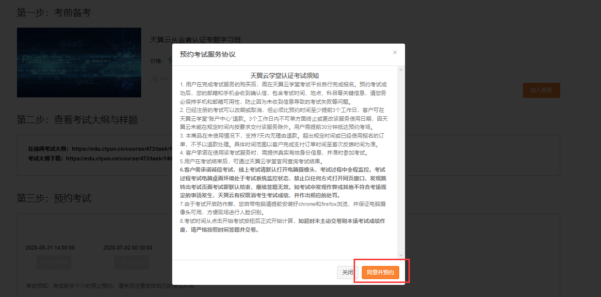 2、選擇需要參加認證,進入認證詳情頁后,查看第三步“預約考試”選擇需要參加考試,點擊“預約考試”。