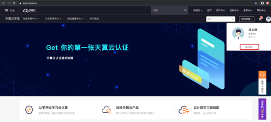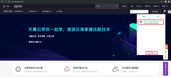 登錄平臺之后會自動進入天翼云學堂首頁,平臺首頁按功能模塊分為11個區域,效果圖如下: