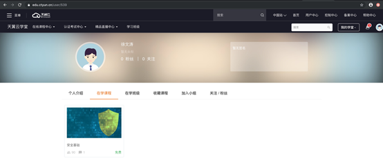 在個人主頁平臺用戶可查看到你的個人介紹、正在學習課程/班級、收藏的課程、加入的小組、你關注的用戶以及你的粉絲。