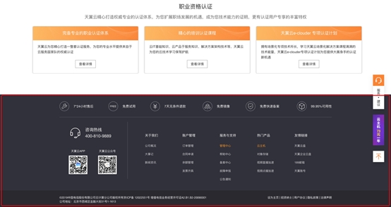 嵌入天翼云主站底部欄,和天翼云主站底部保持一致。