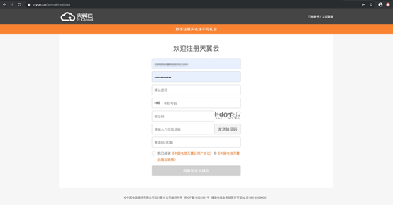 在天翼云官網沒有賬號的用戶,請先注冊一個賬號,注冊地址為//www.daliqc.cn/auth/#/register