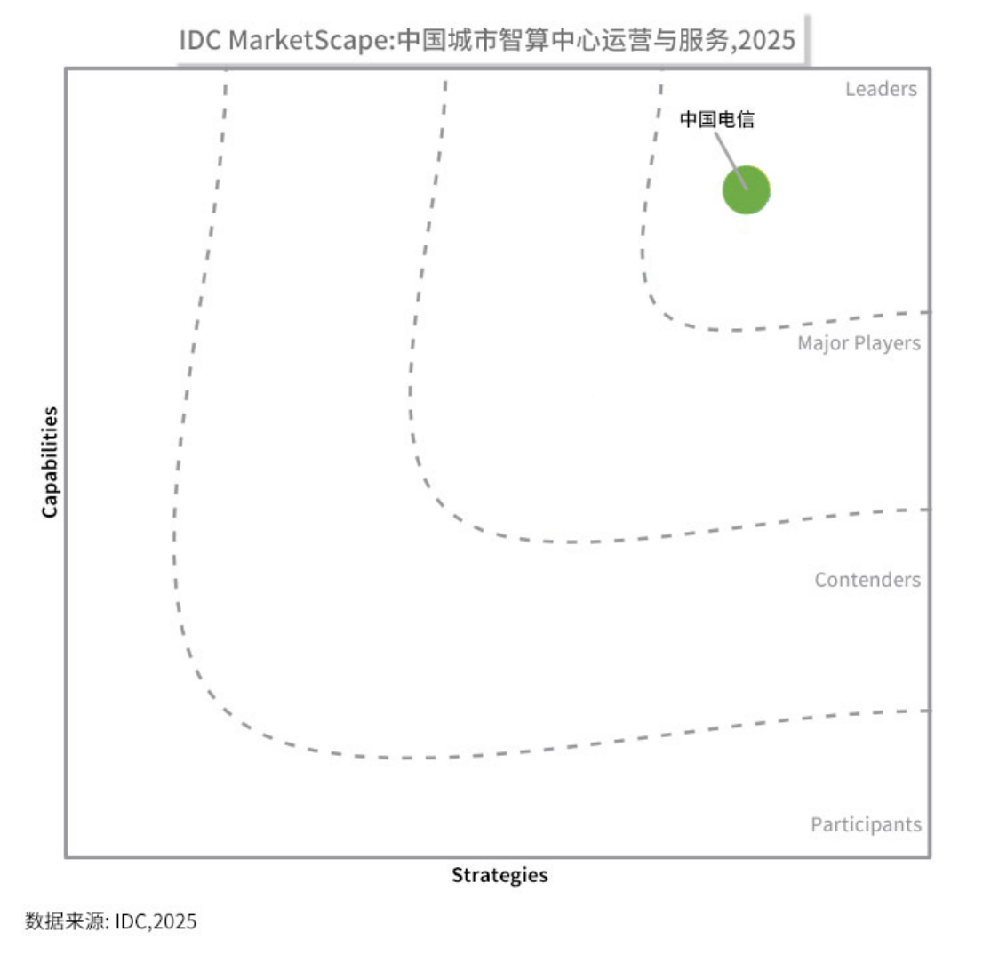 近日,國際數據公司IDC發布《IDC MarketScape:中國城市智算中心運營與服務2025年廠商評估》。報告顯示,中國電信天翼云憑借領先的戰略及能力,在該項評估中位列“領導者象限”,并且在能力維度位列運營商云第一,彰顯了天翼云作為國家云在智算領域的領先地位,以卓越的技術實力、運營和服務能力引領中國城市智算中心高質量發展。